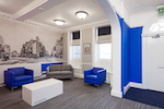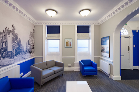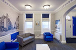 A full wall Mural was designed and installed in the reception area to reflect the history of the area and provide clients with a link to the Banks heritage. Ground floor a Boardroom and a number of meeting rooms were created for client visits. First floor Open plan office areas and storage. Second floor offices and kitchen area.